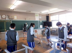 午後から2年生は式場づくりを、1年生は校内の清掃をと、3年生への思いを胸に、明日の卒業式の準備をしました。