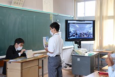 13時30分から14時20分まで、2年生がテレビ愛媛とのリモート授業を行いました。