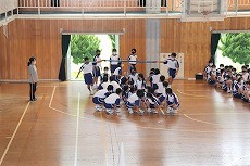 午前中、雨天のため、3学年とも体育館で練習を行いました。